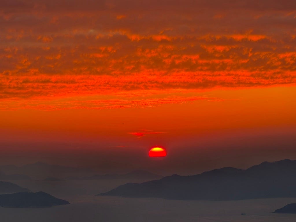 The ocean stretched out below us, endless and darkening, as the sun dipped toward the horizon and the sky ignited in soft fire. Gold bled into rose. Blue deepened into indigo. I found myself completely still, overcome by a feeling that had nothing to do with spectacle and everything to do with scale.